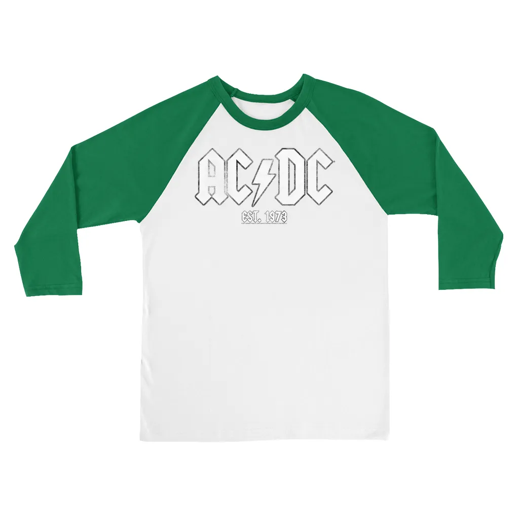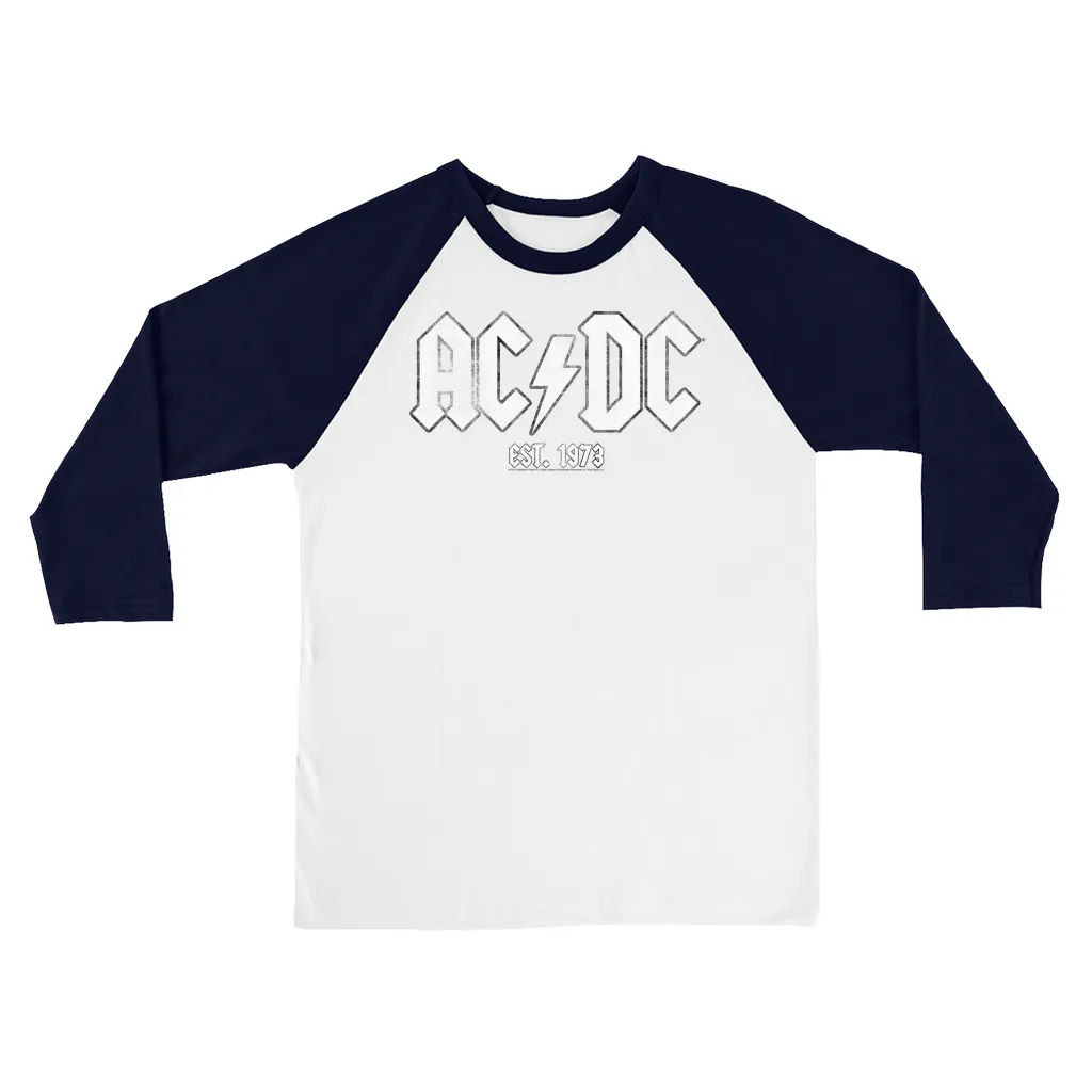 • AC/DC Est. 1973 Distressed 3/4 Sleeve Baseball Tee Design