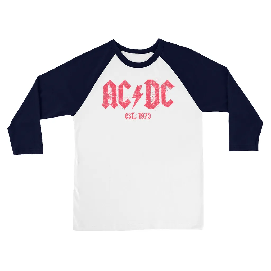 • AC/DC Est. 1973 Red Design Distressed 3/4 Sleeve Baseball Tee Design