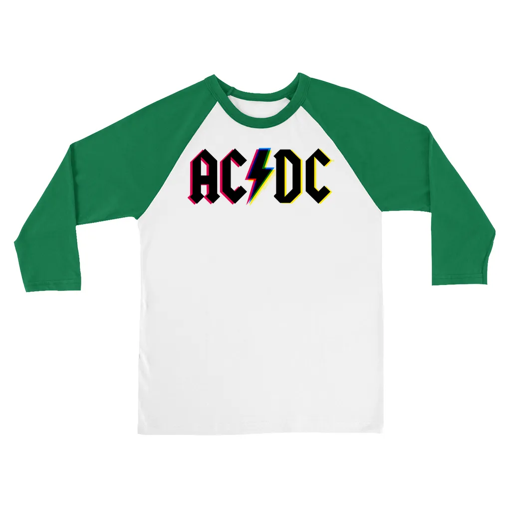 • Neon AC/DC Glitch Logo 3/4 Sleeve Baseball Tee Design