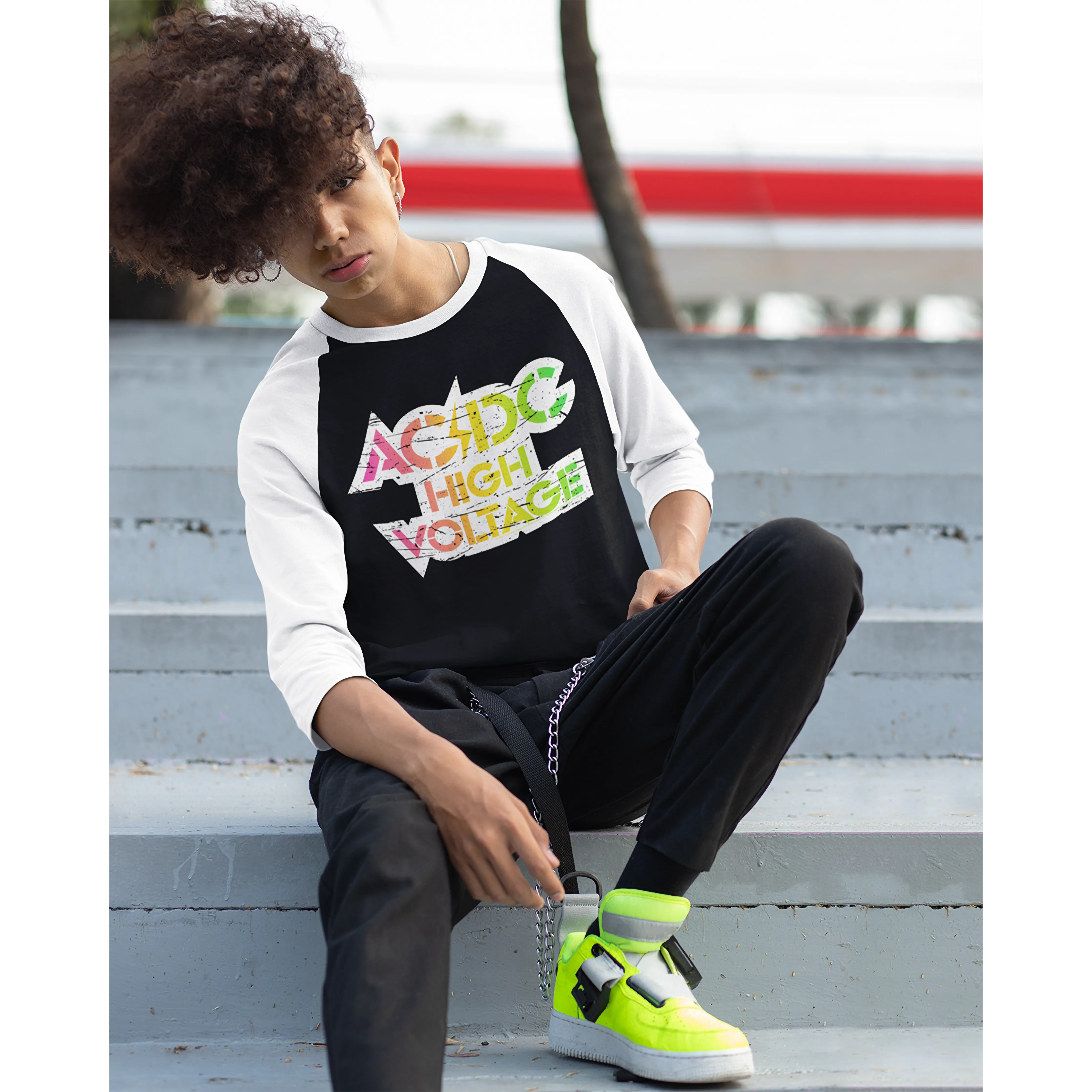 • Neon High Voltage Logo (Equineop Exclusive) 3/4 Sleeve Baseball Tee Design
