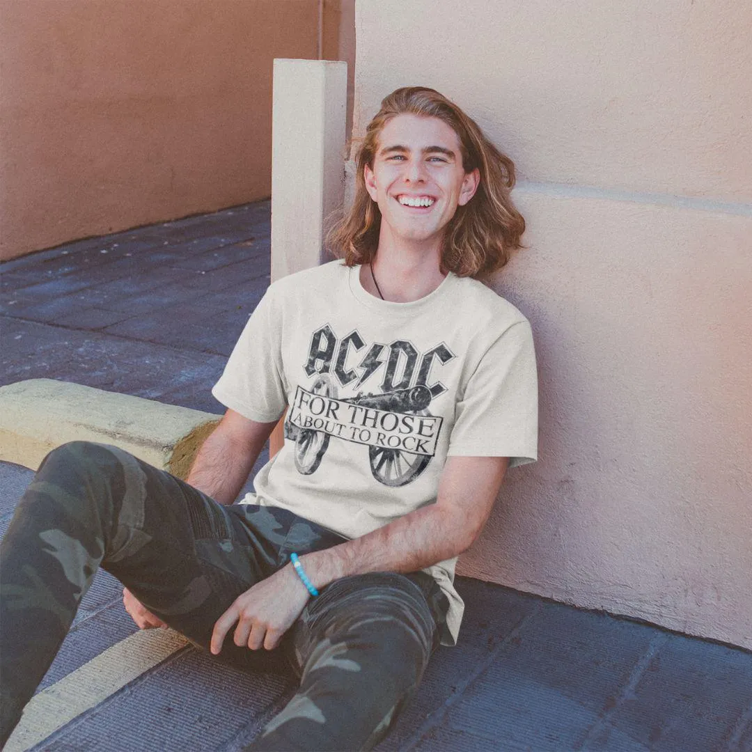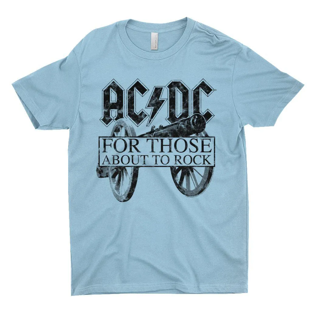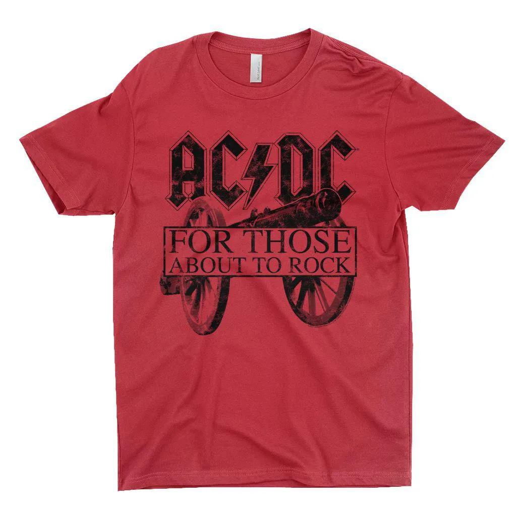• For Those About To Rock Black Cannon Image Distressed T-Shirt Design