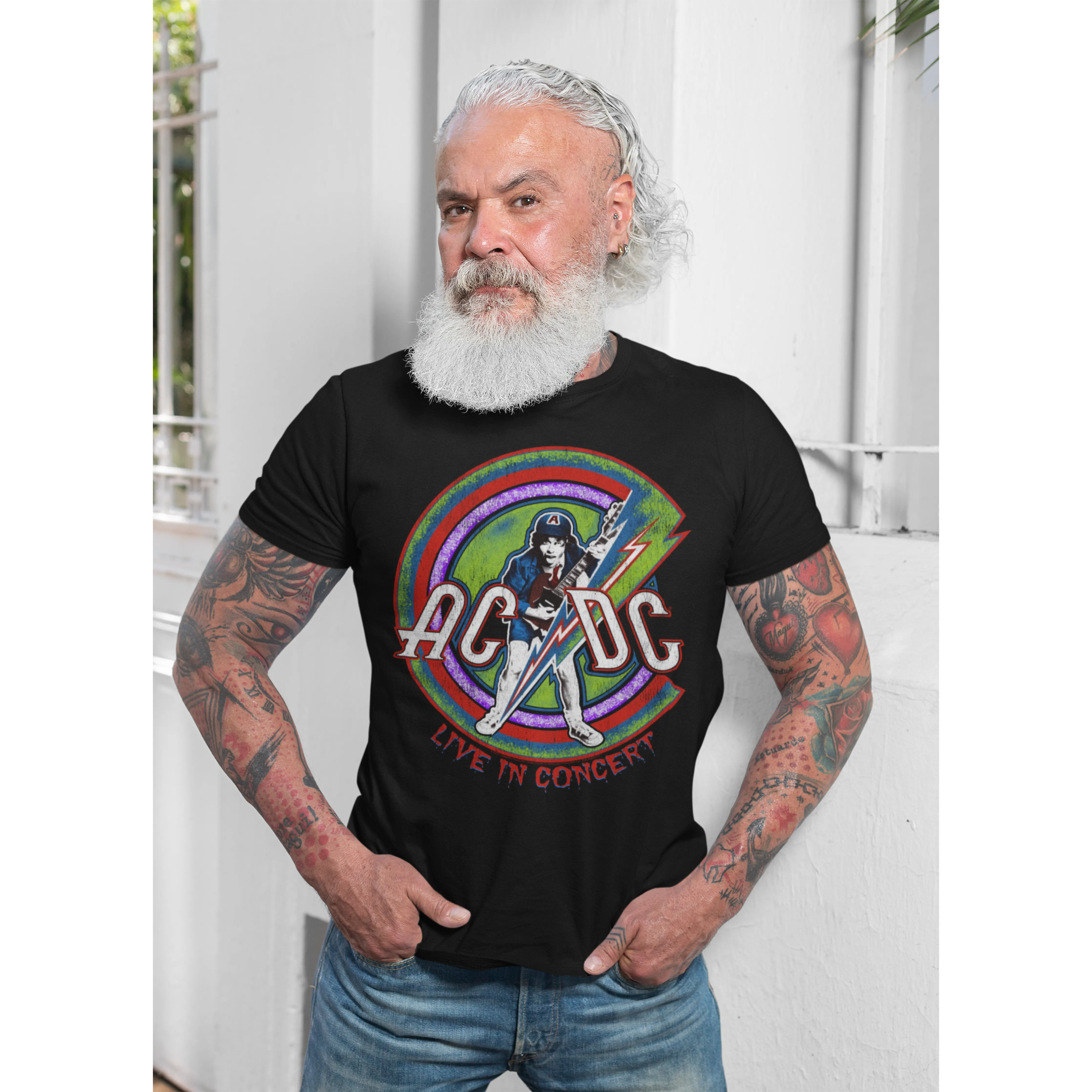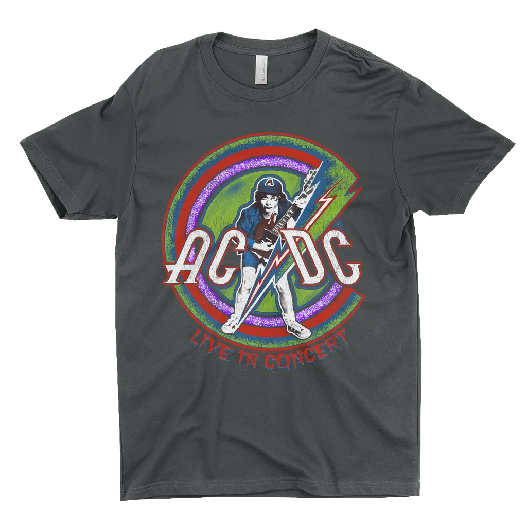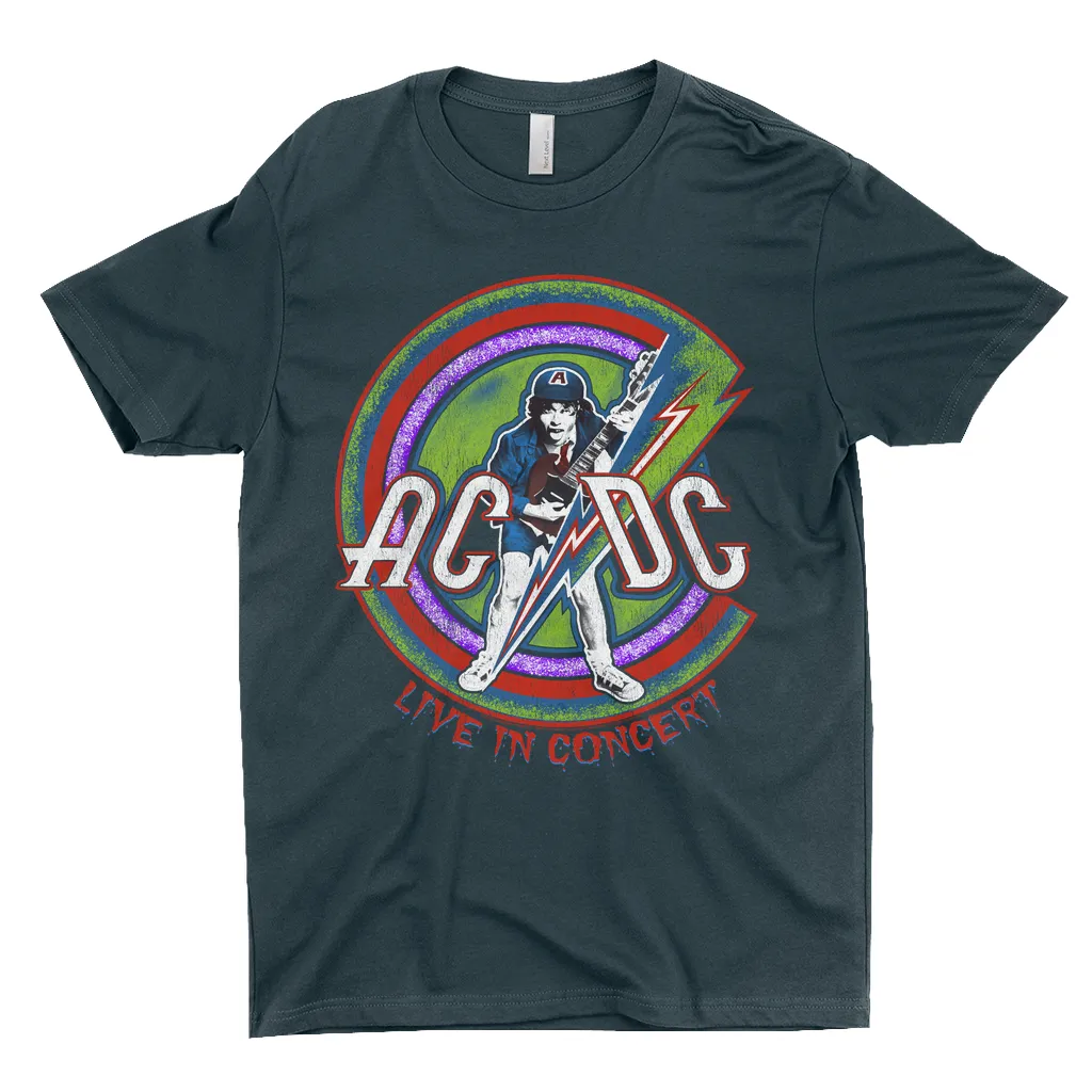 • Authentic ACDC Merchandise • 100% Cotton (except Heather Grey, which is 90% Cotton)• Retro Stitched Live In Concert Reissue T-Shirt Design• ACDC T-Shirt