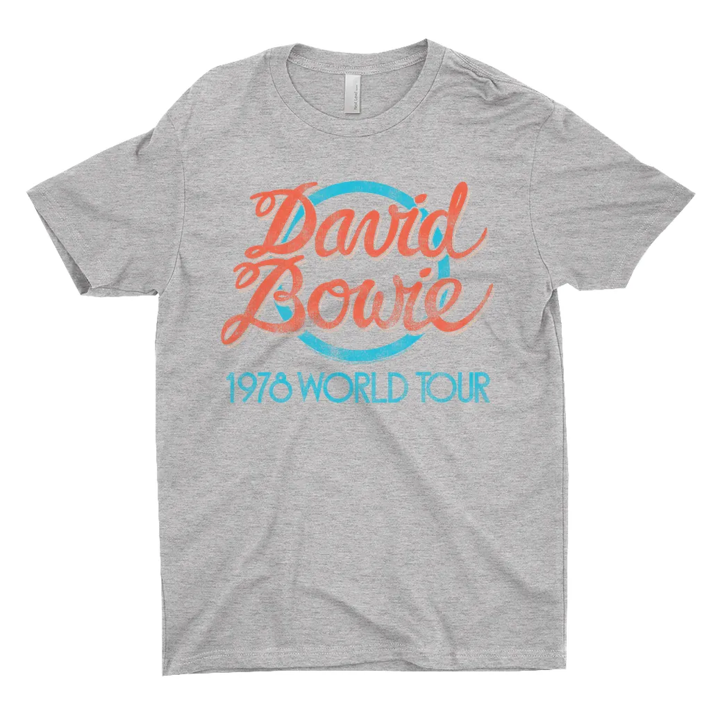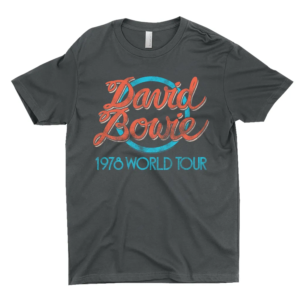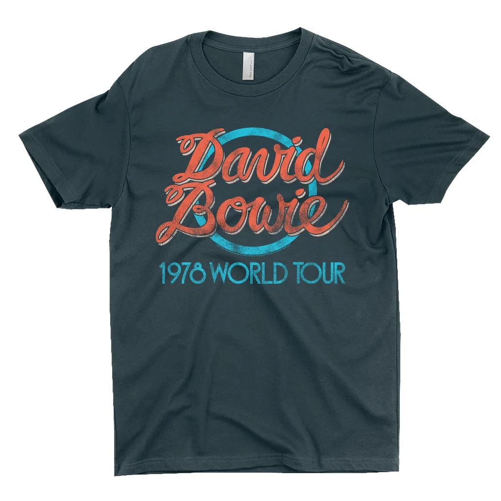 •• 100% Cotton (except Heather Grey, which is 90% Cotton)• Turquoise 1978 World Tour Distressed T-Shirt Design• David Bowie T-Shirt