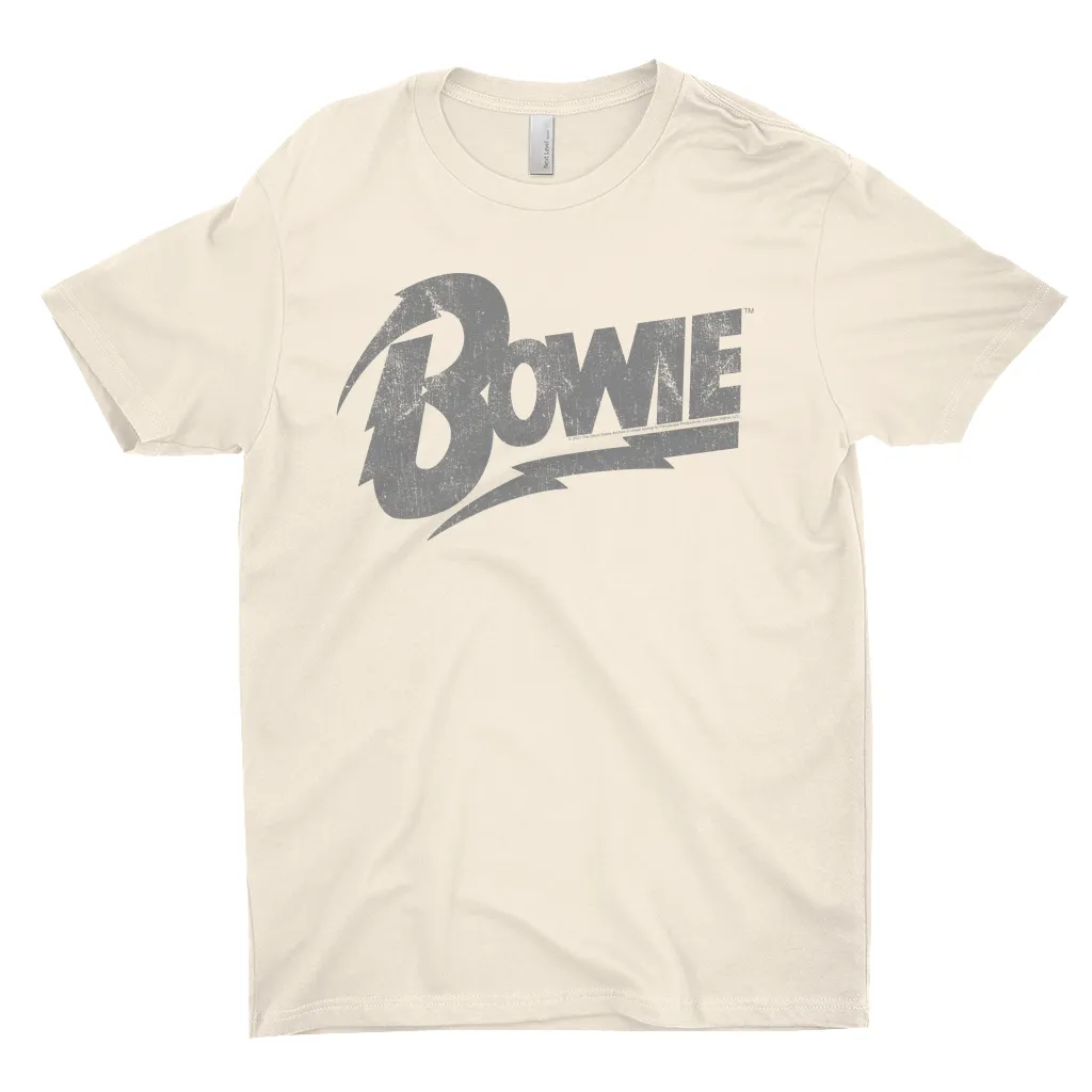 •• 100% Cotton (except Heather Grey, which is 90% Cotton)• Vintage Bowie Silver Logo Distressed T-Shirt Design• David Bowie T-Shirt