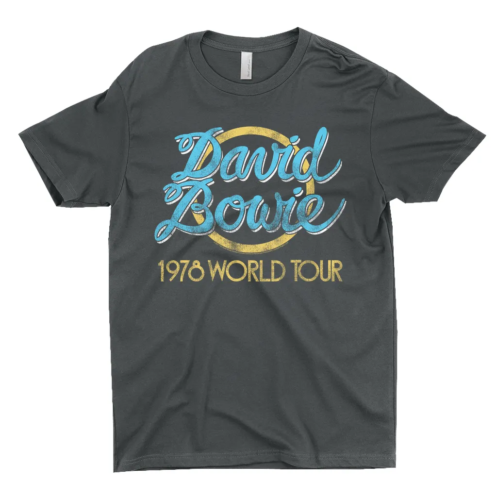 • Equineop Exclusive Design •• 100% Cotton (except Heather Grey, which is 90% Cotton)• Yellow 1978 World Tour Distressed T-Shirt Design• David Bowie T-Shirt